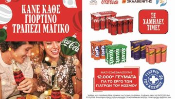 24 Δεκέμβριος 2025 Coca-Cola Τρία Έψιλον και Γιατροί του Κόσμου προσφέρουν 12.000 γεύματα αυτές τις γιορτές