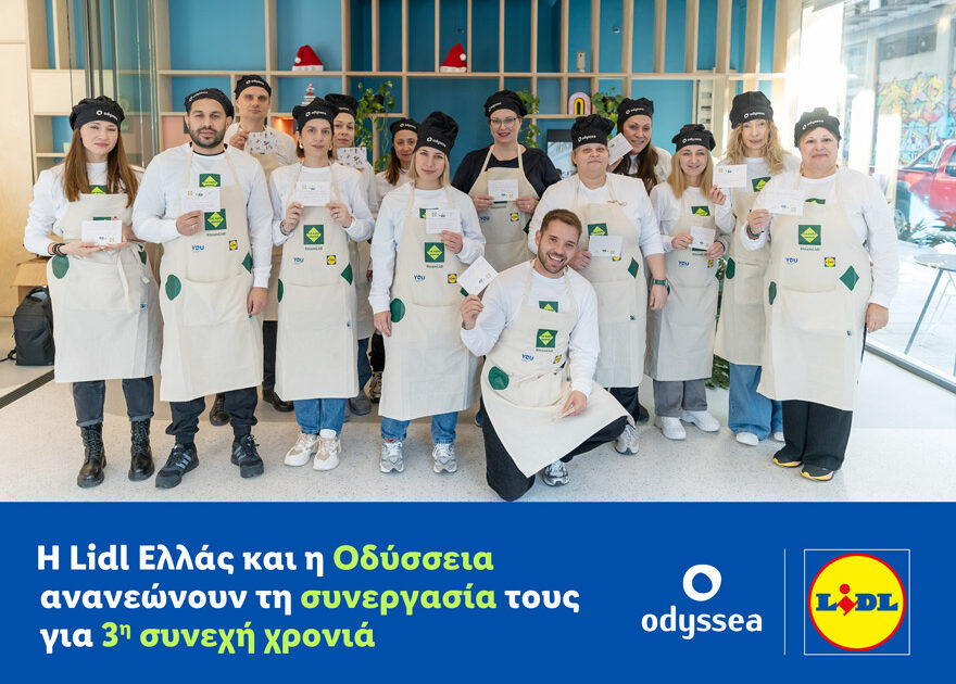 Για 3η συνεχή χρονιά, η Lidl Ελλάς και η Οδύσσεια ενώνουν τις δυνάμεις τους, επιβεβαιώνοντας τη δέσμευσή τους για τη στήριξη συνανθρώπων μας που βρίσκονται σε ανάγκη. Μέσα από τις καθιερωμένες πλέον πρωτοβουλίες «Ένα Γεύμα Χαράς» και «Κούτες Αγάπης» που υλοποιούνται με δυναμική εθελοντική συμμετοχή στη Θεσσαλονίκη, η συνεργασία επεκτείνεται και στην Αθήνα, προσφέροντας ουσιαστική ανακούφιση και καλλιεργώντας μια βιώσιμη κουλτούρα γύρω από το φαγητό.